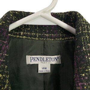 Pendleton Plus Plaid Coat Size 14W Long Sleeve Lined Green/Purple Button Front
