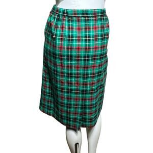 Pendleton Plus Size 16W Wool Plaid Skirt Green Red Black Mid-Length