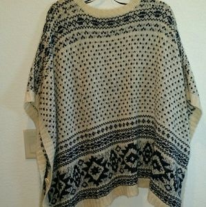 Like new!! Worn only a few times!! This poncho is perfect for the fall/winter weather and super cute with jeans or leggings! Really can be a one size fits all but it's technically a L. I loved this but I don't wear sweaters anymore