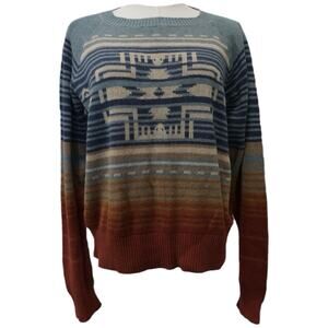 Pendleton Raglan Knit Sweater In Glacier Blue Aztec Southwestern Cotton Size L