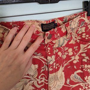 Pendleton Red Floral Denim Skirt, EUC, sz 10
