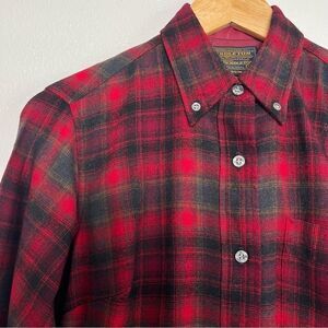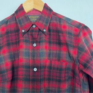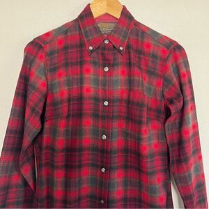 Pendleton Red Plaid Shirt Vintage 60s 70s Wool Button Down Women 12 Medium Large
