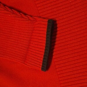 very clean. black trim at sleeves and neck. measures 21.5 inches armpit pit to armpit when laying flat