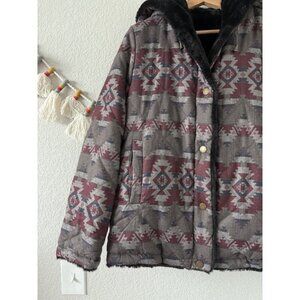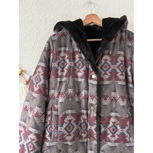 Pendleton Reversible Faux Fur Hooded Quilted Jacket Southwestern Aztec Outdoor M