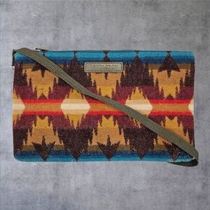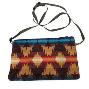 In excellent condition Pendleton Rock Point Large Three Pocket Keeper Southwestern Wool Crossbody Purse