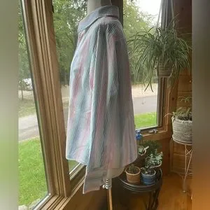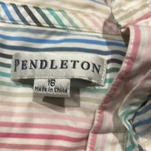 Pendleton Ruffle Button Down Top in excellent condition with exception of missing bottom button. Measurements: bust 45”/arm length 23”/length 26”