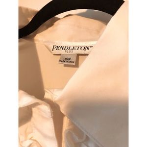 Vintage Pendleton white ruffle top. Beautiful details on cuffs and buttons. Tag says 16, fits more of 12/14. Great condition
