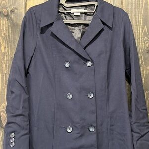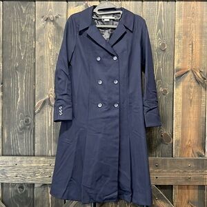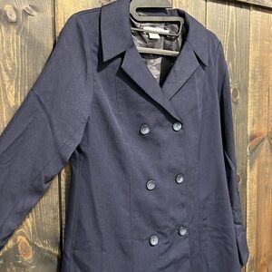 Pendleton brand Seasonless Florence Wool Coat Dress. Size 2 petite. Navy blue. Beautiful! Perfect professional dress for the office, parties, or formal events. Peacoat style with skirt. Button front & sleeves. Preloved. Please see all photos for condition. Needs to be properly cleaned & pressed. Flattering fit. Nice holiday outfit. 100% Virgin Wool. Stock photo is similar style & color but may not be exact.