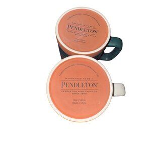 Pendleton Set Of 2 Ceramic Coffee Mugs 18oz White & Green With Multicolor Stripe