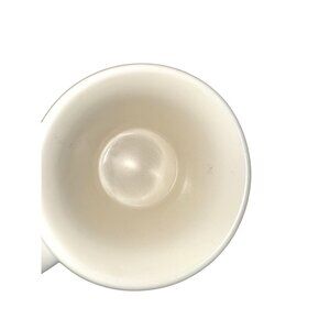 The white mug's interior shows light scratches, no impact on use. Height = 4.5 inches, diameter = 3.5 inches.