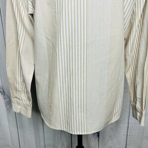 Pendleton Shaped Fit Button Up Shirt Sz 10 Petite Tan White Striped Long Sleeve, 100% cotton, Non-Iron.