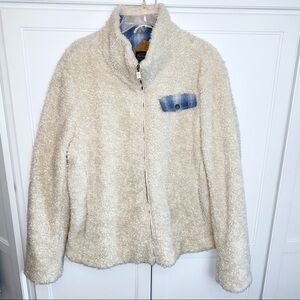 Pendleton Sherpa Cream Zip JacketBlue Plaid Accents XL