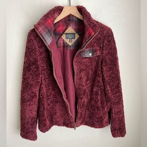 Pendleton Sherpa Fuzzy Full Zip Jacket Dark Red Size Medium