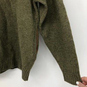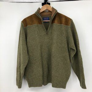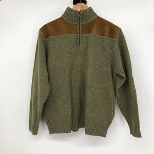 Pendleton Shetland Wool Olive Green Quarter Zip suede elbow patch sweater SP