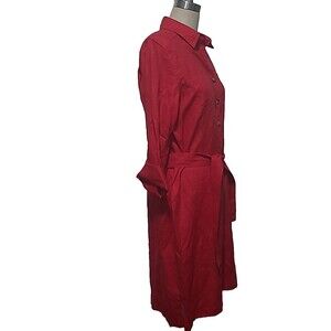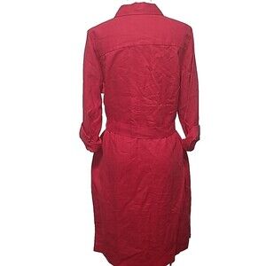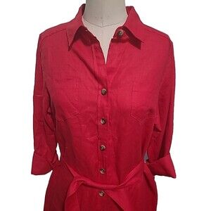 Pendleton Shirt Dress Womens L Crimson Red Linen Long Sleeve Button Up Belted