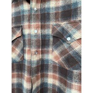 This Pendleton shirt offers a classic Western style with its plaid design and high-grade wool material. The snap closures and dual chest pockets add functional style.