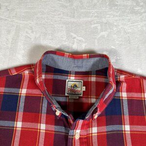 Pendleton Shirt Men Size L Red Plaid Short Sleeve 100% Cotton Single Pocket Surf