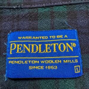 Pendleton Shirt Mens Large Green Blue Blackwatch Tartan Wool Button Down Plaid