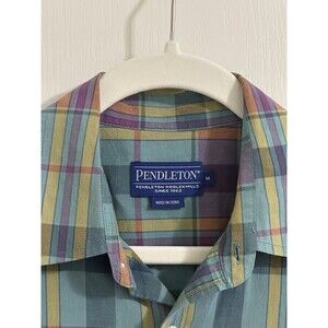 Pendleton Shirt Men’s Size Medium Green Plaid Short Sleeve Button Up
