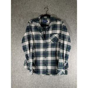 Pendleton Shirt Women Large Green Plaid Button Down Flannel Outdoor Hiking