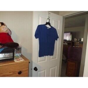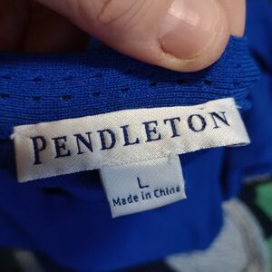 Pendleton Short Sleeve Rayon Nylon Ribbed Tie Front Top Women's Large Blue