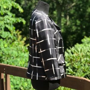 Pendleton luxurious, shimmering and satiny feel 100% silk jacket with two contrasting front pockets and open front design. Made by Pendleton.