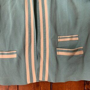 Pendleton Silk Blend Open Front Pastel Blue White Trim Large Women's Cardigan