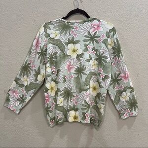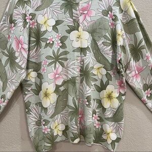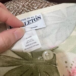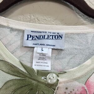 Pendleton Silk Cardigan Sweater Sz L Floral Cream Green Pink Boho Country Casual