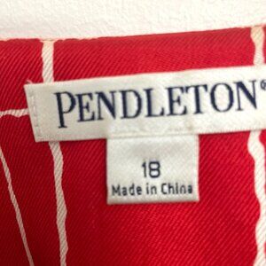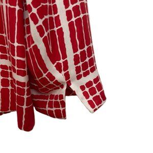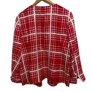 Pendleton Silk Jacket Sz 18 Open Front Red & White Lined Geometric Pockets