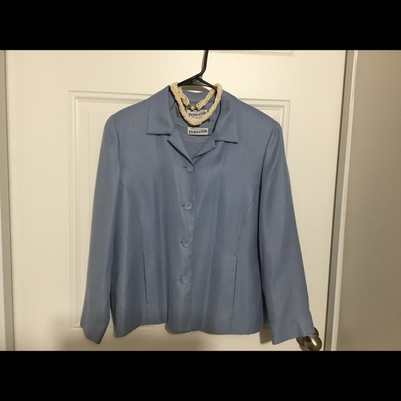 Bluish gray blazer and short sleeve top. Blazer is size 12 and top is a medium.