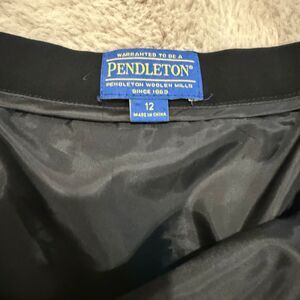 This elegant black pencil skirt from Pendleton is crafted from 100% virgin wool, offering a luxurious feel and timeless style. Fully lined for comfort, it features a back zip closure for an effortless fit. Perfect for professional and formal occasions.