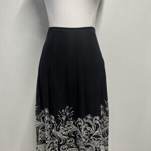 Pendleton Skirt sz 10 Black Ivory Silk Paisley Sheer Pleated Knee Career Church