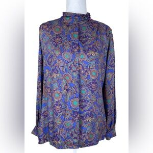 Pendleton Sophisticates Plus Size 24W Blouse Purple Boho Paisley Print Rayon Top Long Sleeve