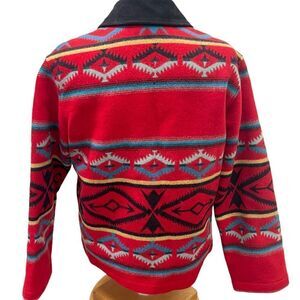 Pendleton Southwestern Navaho Red Wool Suede Collar Zip Jacket Coat Size Small
