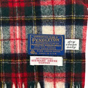 Unisex Vintage Pendleton Stewart Tartan Plaid 100% Virgin Wool Fringe Scarf Made in USA