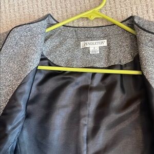 Stylish gray blazer with black buttons. Non smoking home. Worn briefly in corporate environment. Like new condition. Wool and silk. Fully lined.