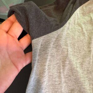 Pendleton Surfboard Print Gray & Black Baseball Shirt with 3/4 sleeves offers style and comfort. Perfect for casual outings. Light pilling throughout, and light discoloration under arms.