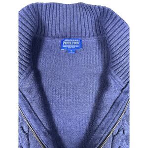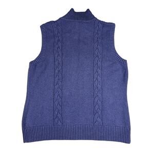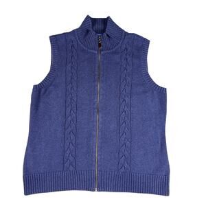 Pendleton Sweater Vest Cable Knit Womens XL Full Zipper Navy Blue Mock Neck