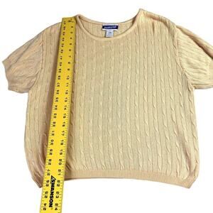Pendleton Sweater Women Large Yellow Short Sleeve Vintage Silk Blend Cable Knit