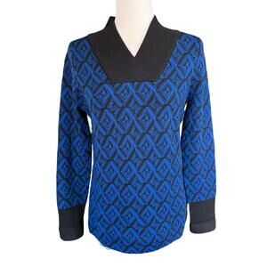 Pendleton Sweater Women's 100% Merino Wool Blue Geometric Outdoors Small Preppy