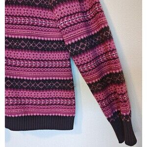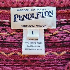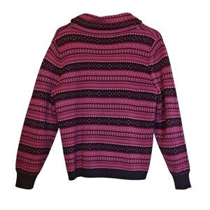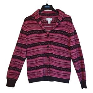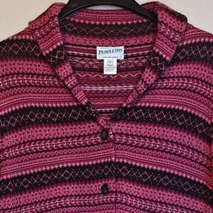 Pendleton Sweater Womens Large Pink Black 100% Merino Wool Button Up Knit Shawl