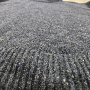 Color/finish: Navy blue with flecked Donegal tweed look; ribbed turtleneck, cuffs, and hem.