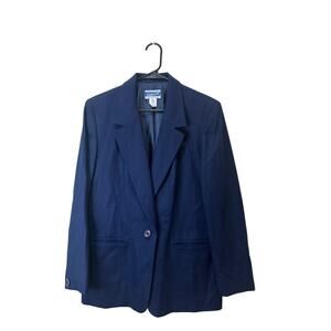 Pendleton Sz 8 100% Virgin Wool Navy Blue Blazer Jacket Women - GREAT!