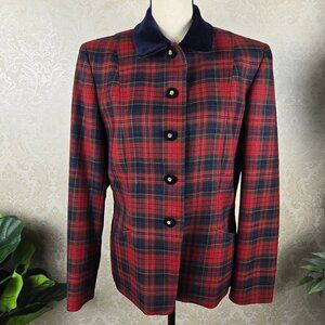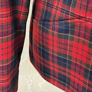 Pendleton Sz 8 Red/Green/Blue Plaid 100% Wool Blazer Button Front Pockets Collar