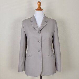 Pendleton wool blazer jacket. Size 14. Tan khaki beige color. Shoulder padding. Fully lined. 3 button front. Front slit pockets still sewn closed.