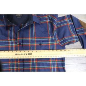 Pendleton Trail Shirt Mens Medium Plaid Virgin Wool Elbow Patch Flannel LARGE