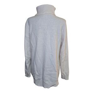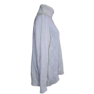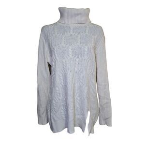 Pendleton womens turtleneck pullover sweater in a petite extra-large size. This cozy sweater comes in a whitish ivory/cream color and is crafted from a luxurious blend of viscose, merino wool, nylon, and cashmere for softness and warmth. Designed with a side slit detail, it offers both comfort and style.