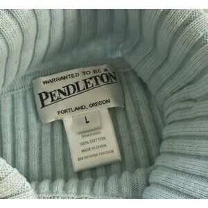 Pendleton Turtleneck Ribbed Knit Sweater Lt Blue Long Sleeve Warm Cotton Top L