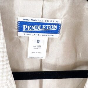Pendleton FLAX Blazer Suit Jacket GINGHAM Tan White Striped SIZE 10. SHOULDER PADS. EUC