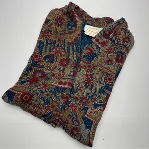 Pendleton VNT Country Sophisticates Floral Blouse W 14 Brown Maroon Blue USA